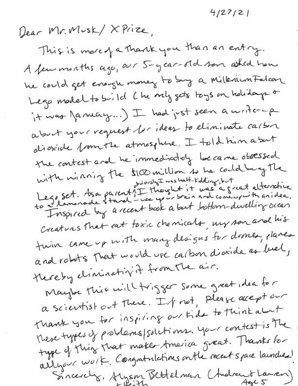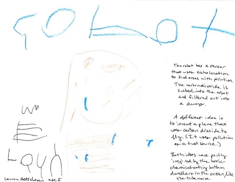 We love to see your letters and hear your radical ideas. This week, we have two early entries for the $100M XPRIZE Carbon Removal, courtesy of future scientists Andrew and Lauren, who are five years old and also happen to be twins. Check out their robot and drone designs below, and as ever, send your ideas at [email protected]